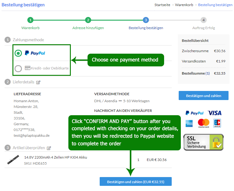 To place an order from hplaptopakku.de is easy. We have provided here with a guideline to assist you on how to place an order with us.