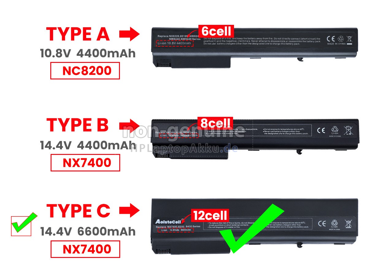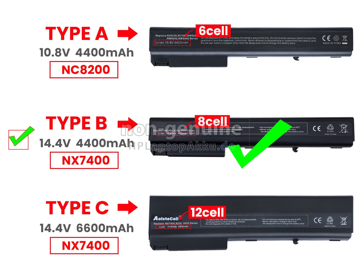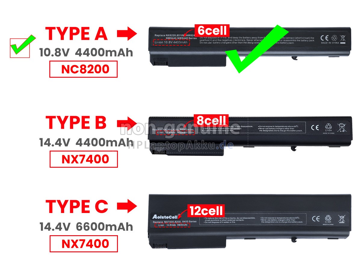 2 Vergleichen Sie die Spannung und Kapazität Ihres originalen 410311-243 Akku mit der unserer und prüfen Sie dann das Gesamtbild unseres Produkts, um festzustellen, ob die Schnittstelle und die allgemeine Form gleich sind.