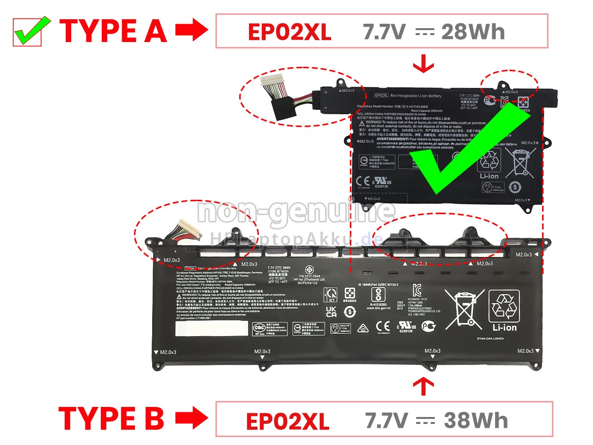 Battery EP02XL has two styles, their appearance, size, capacity are not the same compatible use, according to the primary battery purchase. - SKUHDE6924