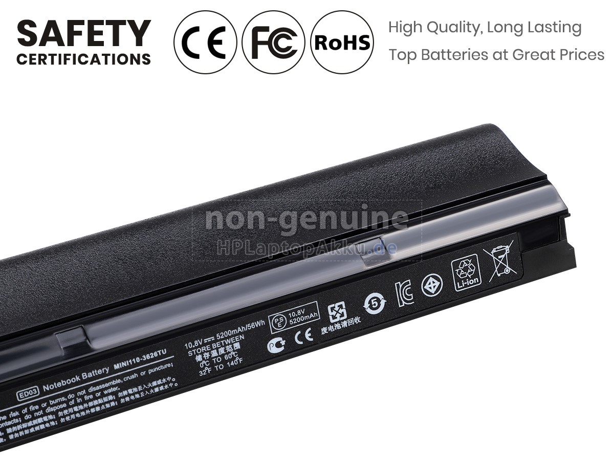 Der neue HP Mini 210-2210EE Ersatzakku besteht aus hochwertigen Li-ion-Akkuzellen von Samsung, Panasonic und LG. Das Gehäuse der Akku besteht aus langlebigem ABS-Material. Wir haben sehr strenge Anforderungen auf die Sicherheit. Jede HP Mini 210-2210EE Akku von HPLaptopAkku.de wird strengen Tests unterzogen und hat eine Reihe von Sicherheitszertifizierungen wie CE, GS, UL, ROHS und ISO 9001/9002 bestanden. Sie entsprechen den internationalen Standards und sind zu 100% mit den Spezifikationen des Originalherstellers kompatibel. Bezüglich der Leistung kann sie sich mit der originalen Mini 210-2210EE Batterie vergleichen oder sogar übertreffen. Dieser Akku für HP Mini 210-2210EE kann etwa 600 Lade- und Entladezyklus erreichen, was Ihnen eine super lange Akkulaufzeit ermöglicht.