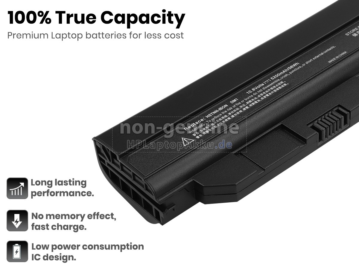 Der neue HP Pavilion DM1-1020SL Ersatzakku besteht aus hochwertigen Li-ion-Akkuzellen von Samsung, Panasonic und LG. Das Gehäuse der Akku besteht aus langlebigem ABS-Material. Wir haben sehr strenge Anforderungen auf die Sicherheit. Jede HP Pavilion DM1-1020SL Akku von HPLaptopAkku.de wird strengen Tests unterzogen und hat eine Reihe von Sicherheitszertifizierungen wie CE, GS, UL, ROHS und ISO 9001/9002 bestanden. Sie entsprechen den internationalen Standards und sind zu 100% mit den Spezifikationen des Originalherstellers kompatibel. Bezüglich der Leistung kann sie sich mit der originalen Pavilion DM1-1020SL Batterie vergleichen oder sogar übertreffen. Dieser Akku für HP Pavilion DM1-1020SL kann etwa 600 Lade- und Entladezyklus erreichen, was Ihnen eine super lange Akkulaufzeit ermöglicht.